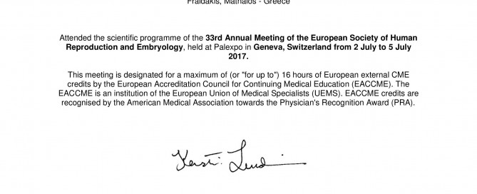 December 2016, Thessaloniki - Greece Presentation of the paper entitled "Study of the embryonic expression of integrin avb3 in 2 and 4 cells mice embryos after ovarian stimulation"